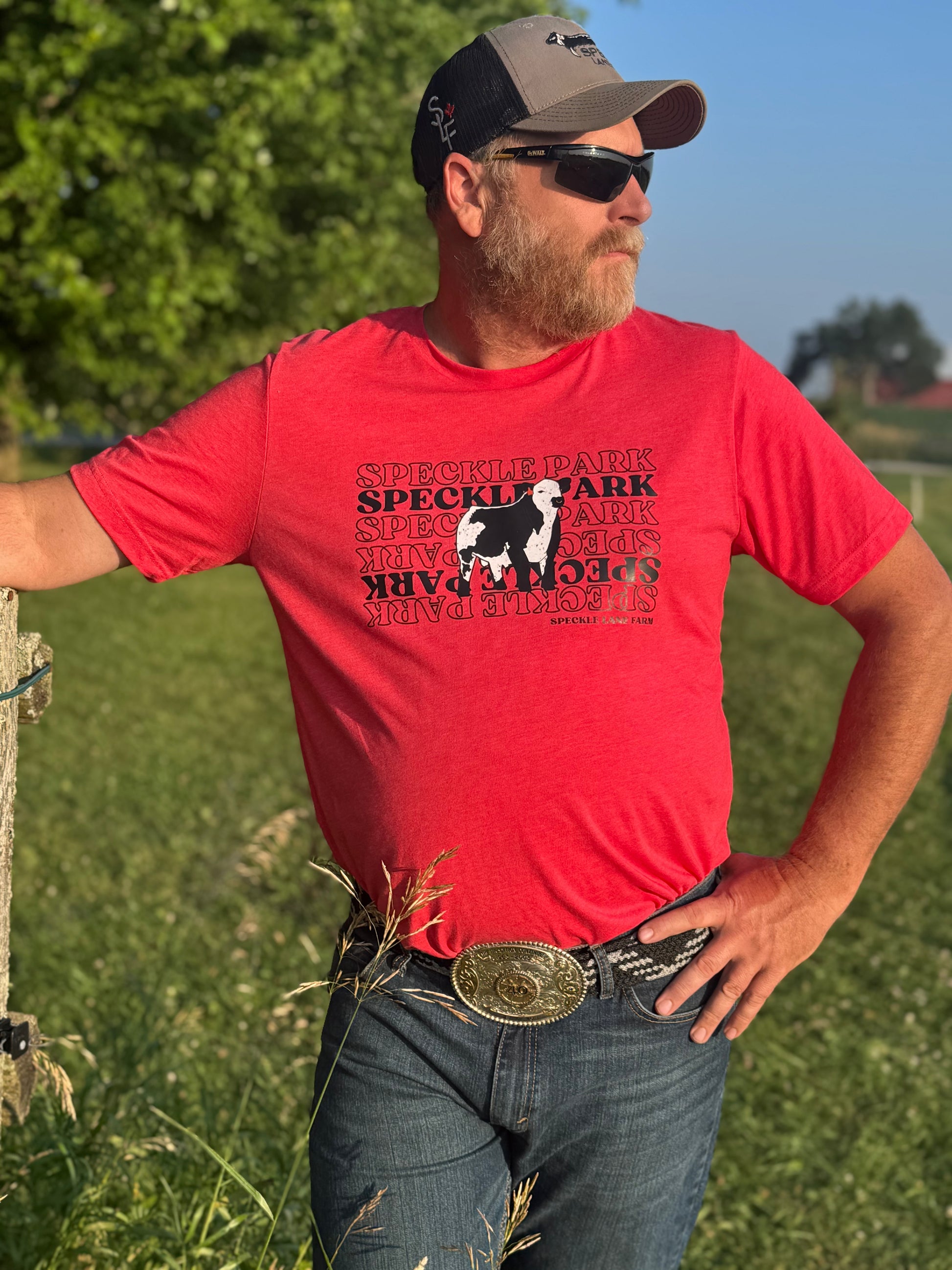 This tee features our custom Speckle Park Bull and text design, hand-pressed right here at Speckle Lane Farm.